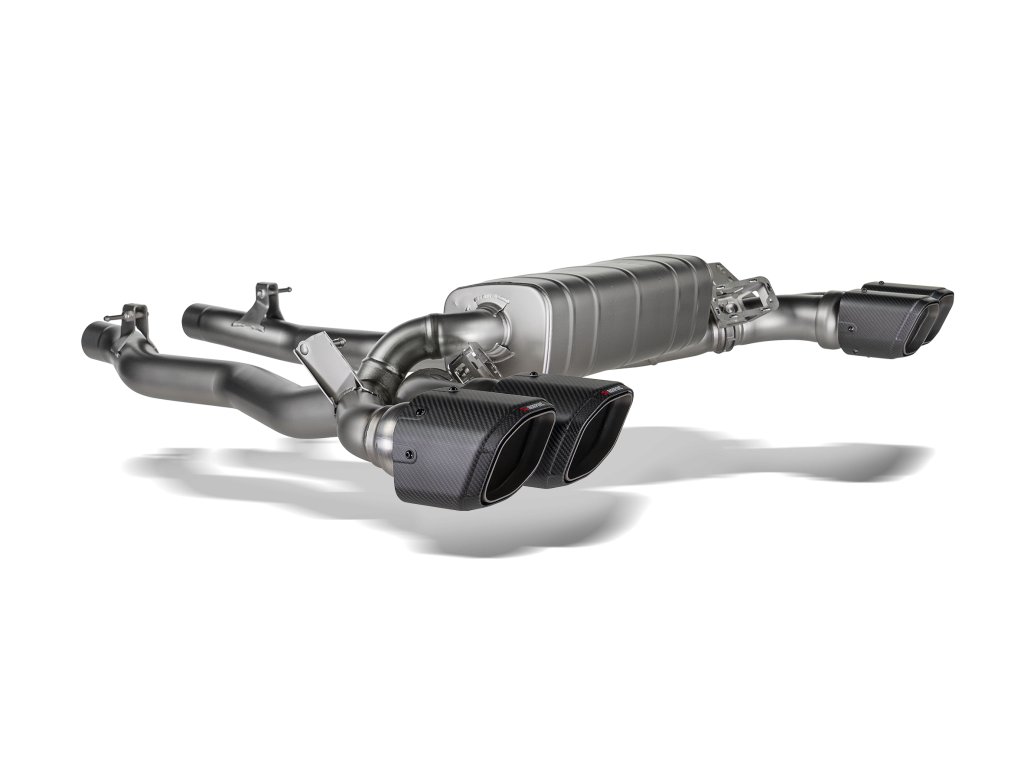 Tento vysoce kvalitní výfukový systém z extrémně lehkého titanu váží o 31,8 % (6,12 kg) méně ve srovnání se standardním sériovým výfukem a byl vyvinut pro vozy s filtry pevných částic. Výfuk disponuje schválením podle EC/ECE. Komplikované díly byly odlity ve vlastní slévárně titanu Akrapovič včetně pouzder výfukových klapek a speciálně navržených kolektorů. Hlavní výfukové potrubí má zvětšený průměr a systém obsahuje speciální ovládací sadu, která s pomocí výfukových klapek vytváří vytříbený zvukový zážitek Akrapovič ve všech jízdních režimech a přináší hluboký a sportovní tón. Systém je zakončen povinnou sadou šestiúhelníkových nebo kulatých koncovek z uhlíkových vláken a titanu (dle výběru zákazníka), obě s integrovanými akustickými reflektory, které odrážejí část zvuku směrem do kabiny.