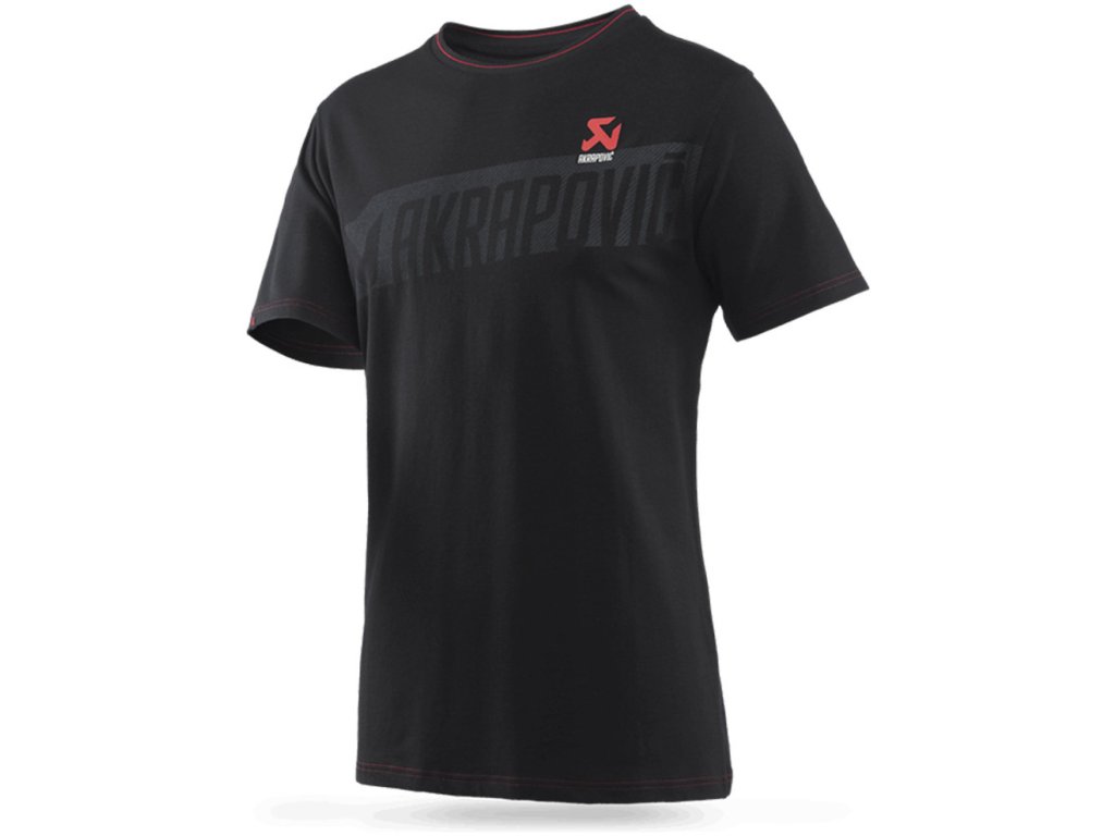 Tričko rovného střihu s krátkými rukávy. Logo Akrapovič na přední i zadní straně.