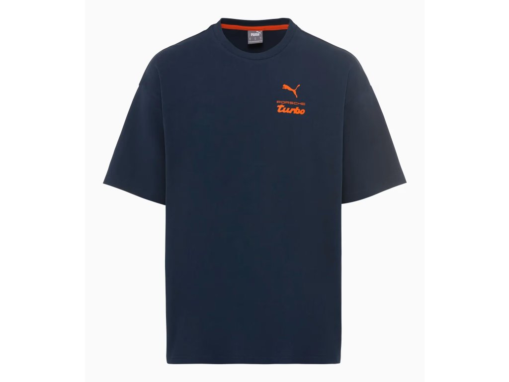 Tričko z kolekce Porsche Legacy s grafikou Turbo, které uprostřed zad zobrazuje Porsche 911 Turbo první generace.